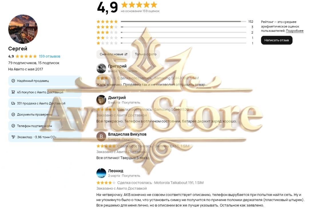 При покупке аккаунта Avito с верификацией вы получаете полный доступ к профилю: логин, пароль, привязанный телефон, подтвержденную почту и активный статус. Все аккаунты уже имеют высокий рейтинг, положительные отзывы и историю продаж — вы не начинаете с нуля. Дополнительно вы получаете инструкцию по настройке и советы по увеличению продаж в первые дни.